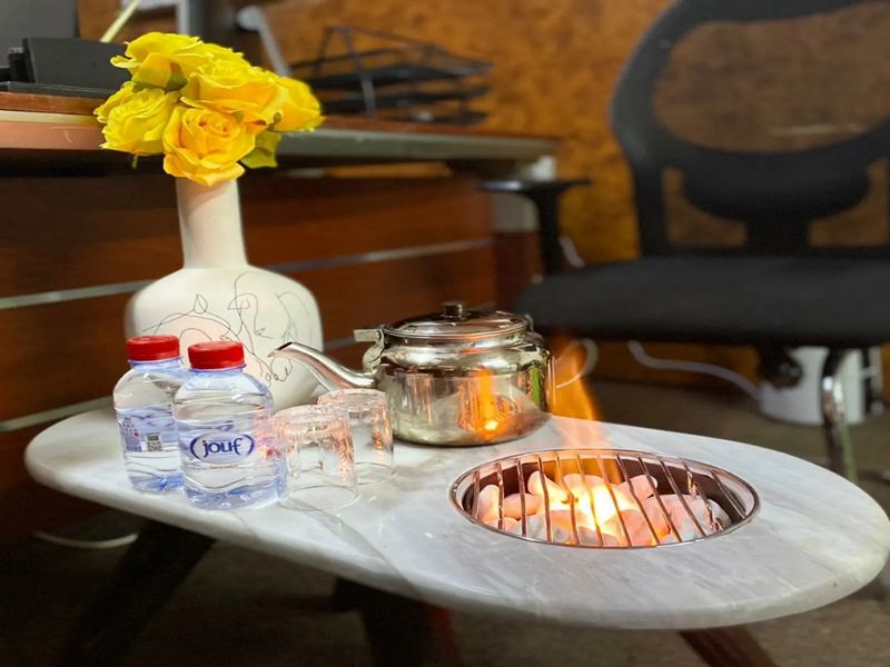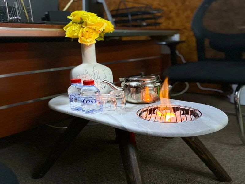 طاولة رخامية بموقد نار مميزة جديدة من نوعها
