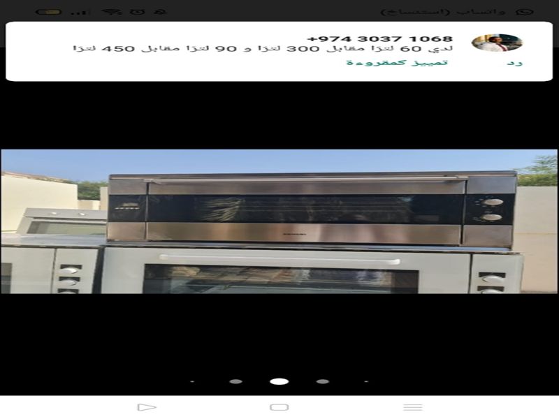 جميع المعلومات و الصور المنشورة على هذا الموقع تم الحصول عليها من قبل المعلن. و إحتمالية وجود أخطاء في المعلومات أو الصور المزودة من قبل المعلن أو خلال إدخال المعلومة إلى الموقع واردة. ولذلك شركة (كيو سيل للتجارة اونلاين) ومن خلال موقعها (كيو ماركت) لا تحمل أي مسؤولية أو تتحمل نتائج هذه المعلومات أو الصور و تؤكد على وجوب التأكد من الأغراض المعلنة شخصيا والقيام بالفحص قبل الشراء.