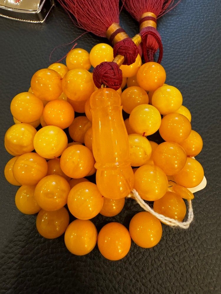 للبيع مسباح كهرمان ماخذ لون ووزن ثقيل الوزن (85) غرام الحجم (13.5) مل عدد الخرز (56) خرزه